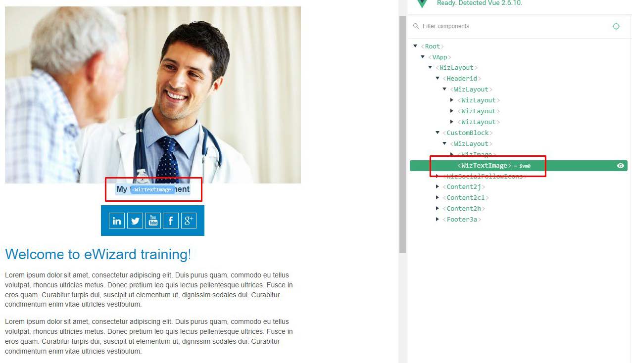 Vue.component('wiz-text-image', wizTextImage);Now, we can use that component everywhere in ET markup or within the blocks.