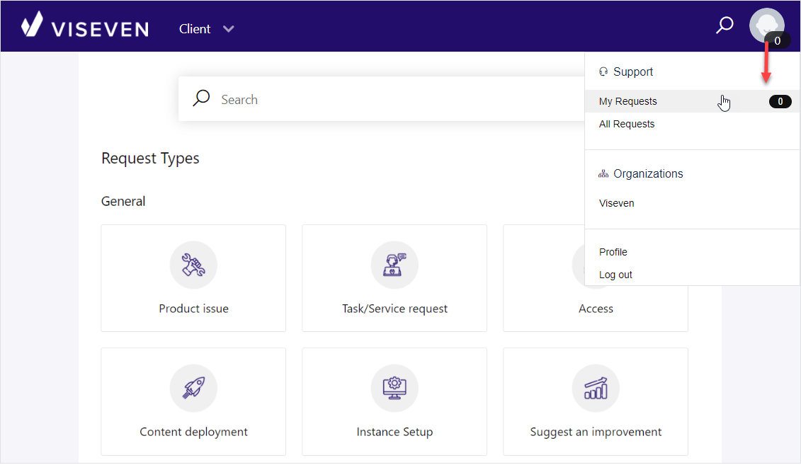 You can see the number of your open requests indicated on the profile icon and in the My requests section.